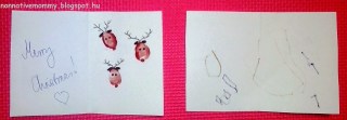 After meeting Santa, we went back to the crafts room to Zs., where we could eat some more or do some more crafts. A Christmas card this time. The reindeer inside are E.’s finger prints.