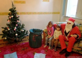 Next, Santa pulled out tiny presents for the children (szaloncukor – the Hungarian traditional Christmas candy and a tangerine) from his bag. We could take some photos with Santa and also the director lady (O.) took some (Thank Goodness!) so this is the only reason why I can include some in this post.