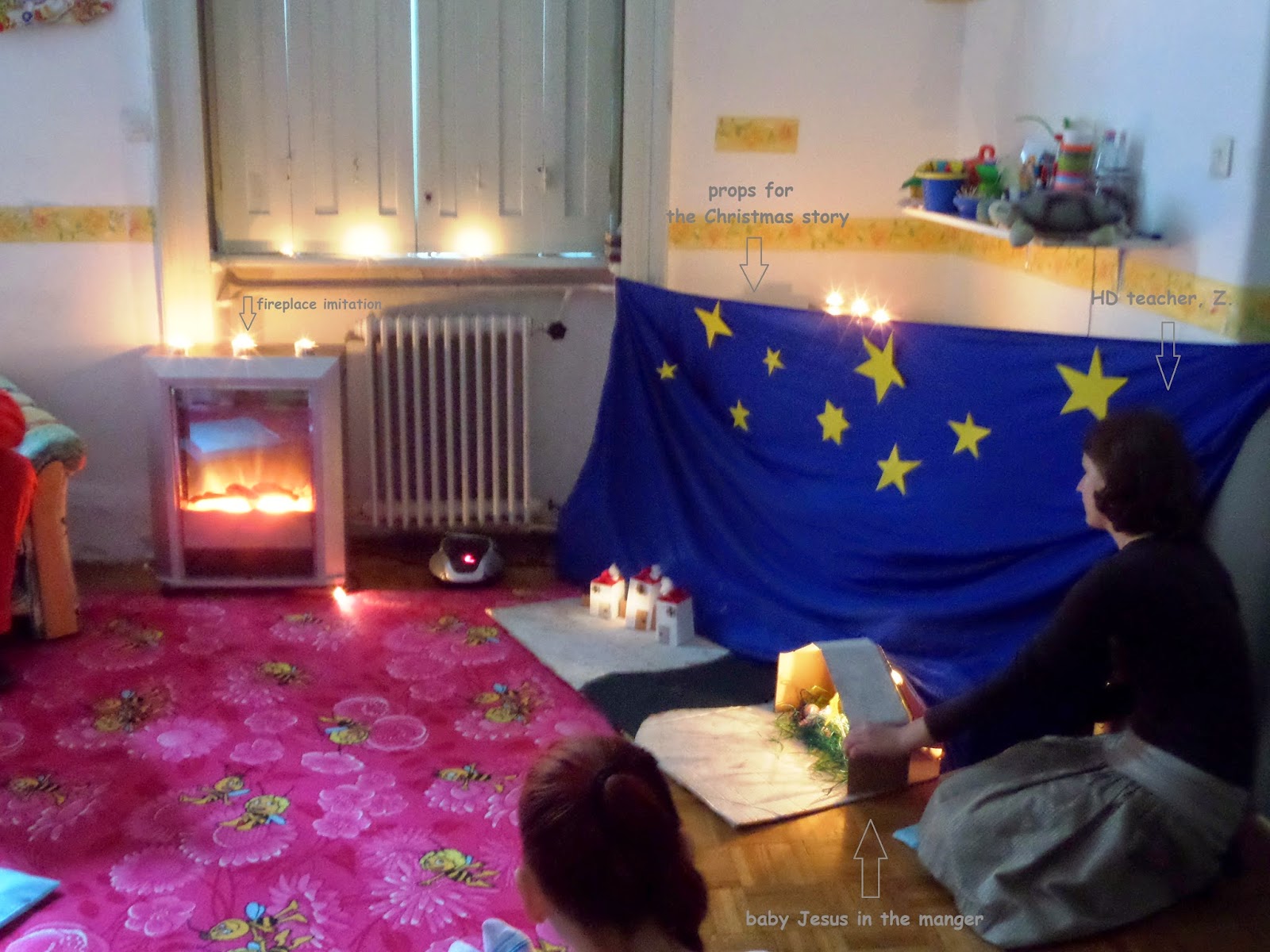 Santa read out the story of a tiny, sad star, called Starlet, who grew big and hot when she needed to give light and warmth to Baby Jesus. The story was read in English, one of the HD teachers’ (Z.) partner played the role of Santa. Although his English wasn’t perfect, but good enough for the occasion.