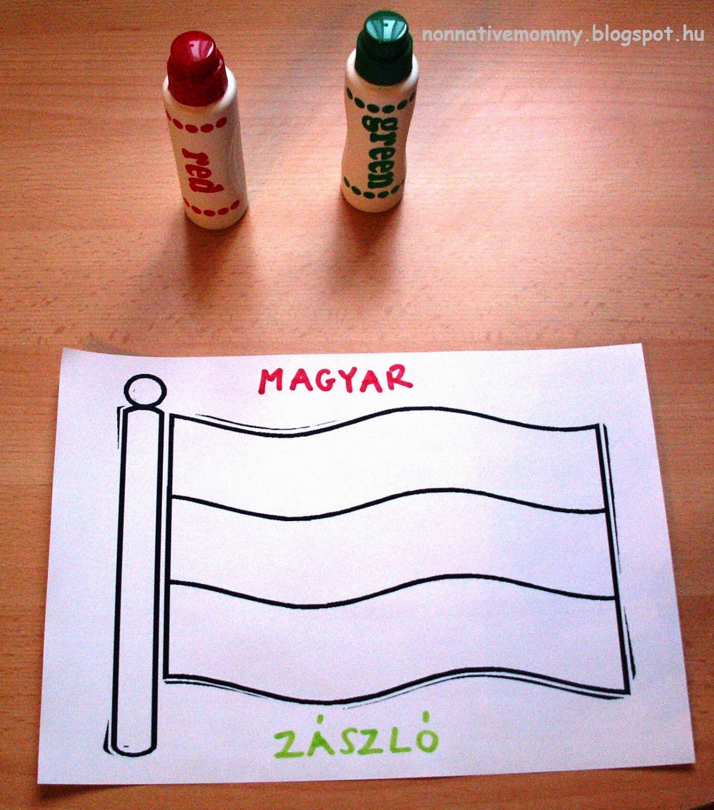 When she saw the sheet E. asked me who wrote there “MAGYAR ZÁSZLÓ” (=Hungarian flag)