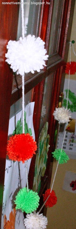 We’ve hung our pom-pom garlands (with the Irish and the Hungarian national colours) on the double doors.