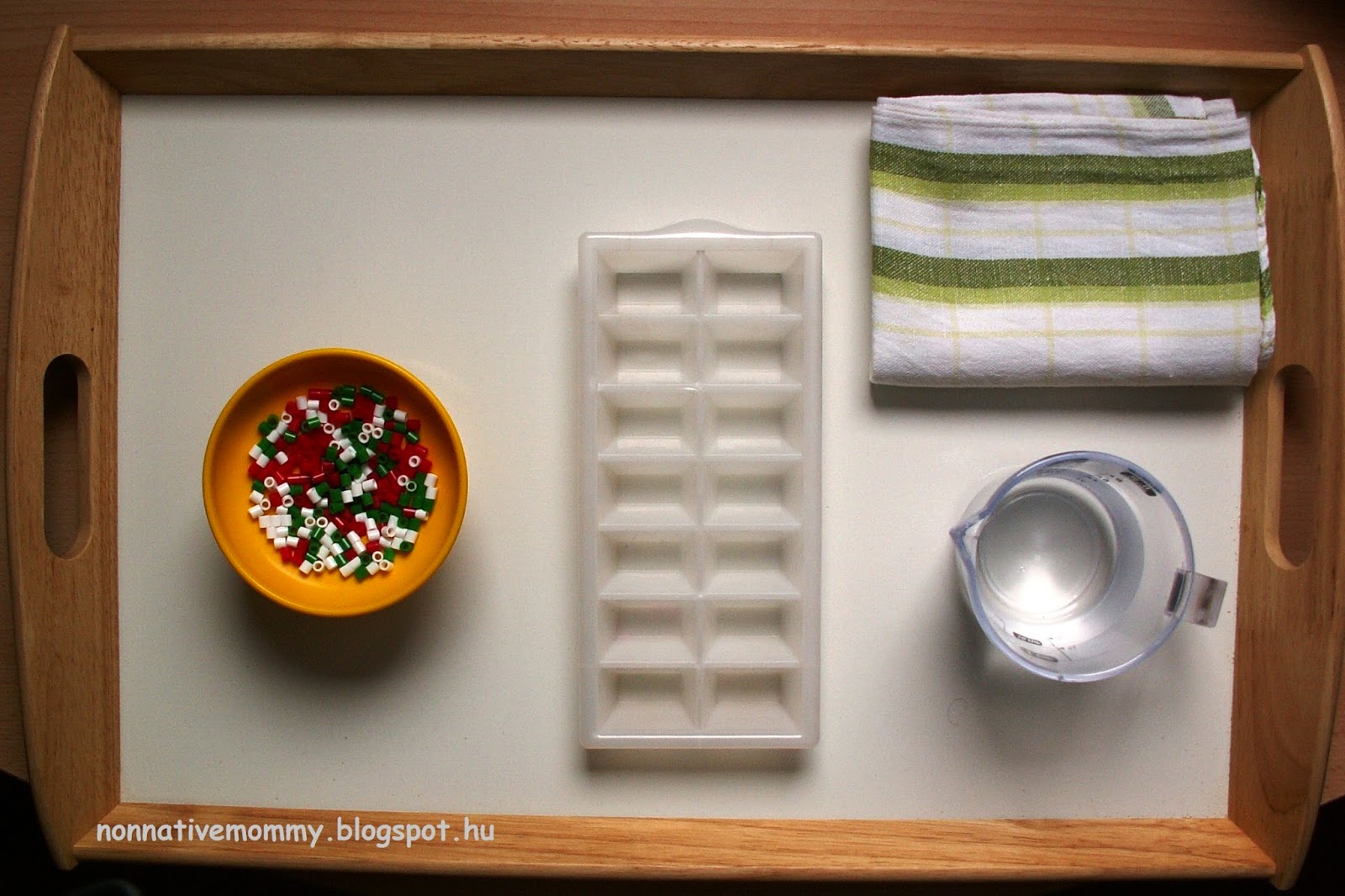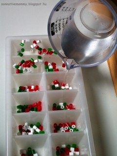 E. filled up the ice cube tray with the beads.