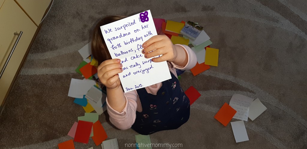 As opposed to last year’s memory jar this year the jar was full by September I had a really hard time to tuck the last 4 months’ experiences into it. Many things have happened this year, plus E. added her own notes secretly.