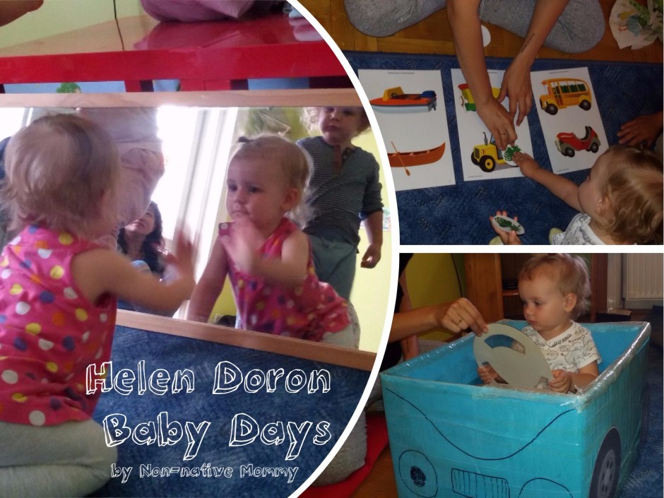 While E. was having fun in her summer camp at our Helen Doron School, Baby L. took part in her very first Baby Days. There are 6 days this year (3 + 2 day within 2 weeks) but we could go to only 5. The days are organised around topics and the teaching materials are made up of HD (Helen Doron) course material and the teacher’s own ideas.