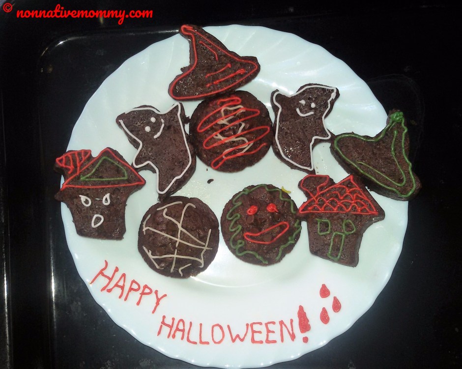 There was a crafty session as well. Little L couldn’t really take part in it, I made her haunted castle, but E. did her best.