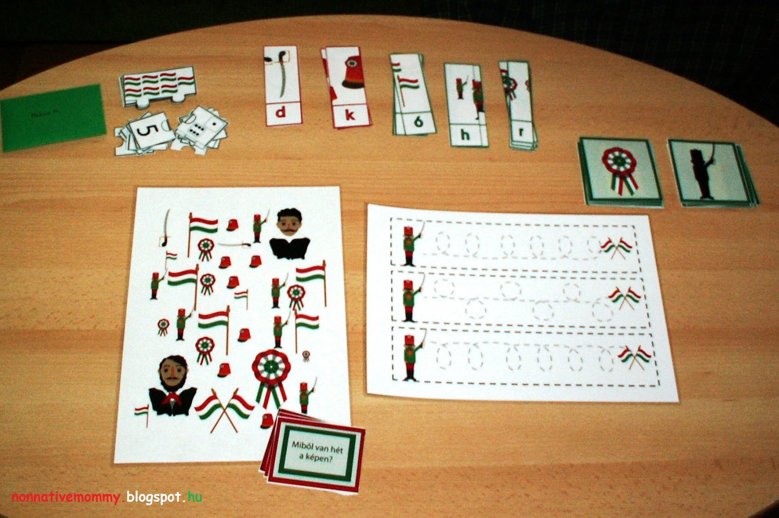 I had very little time to prepare for our national holiday so I took the easy way and downloaded/printed/laminated an absolutely fantastic collection of activities from gyereketeto.hu