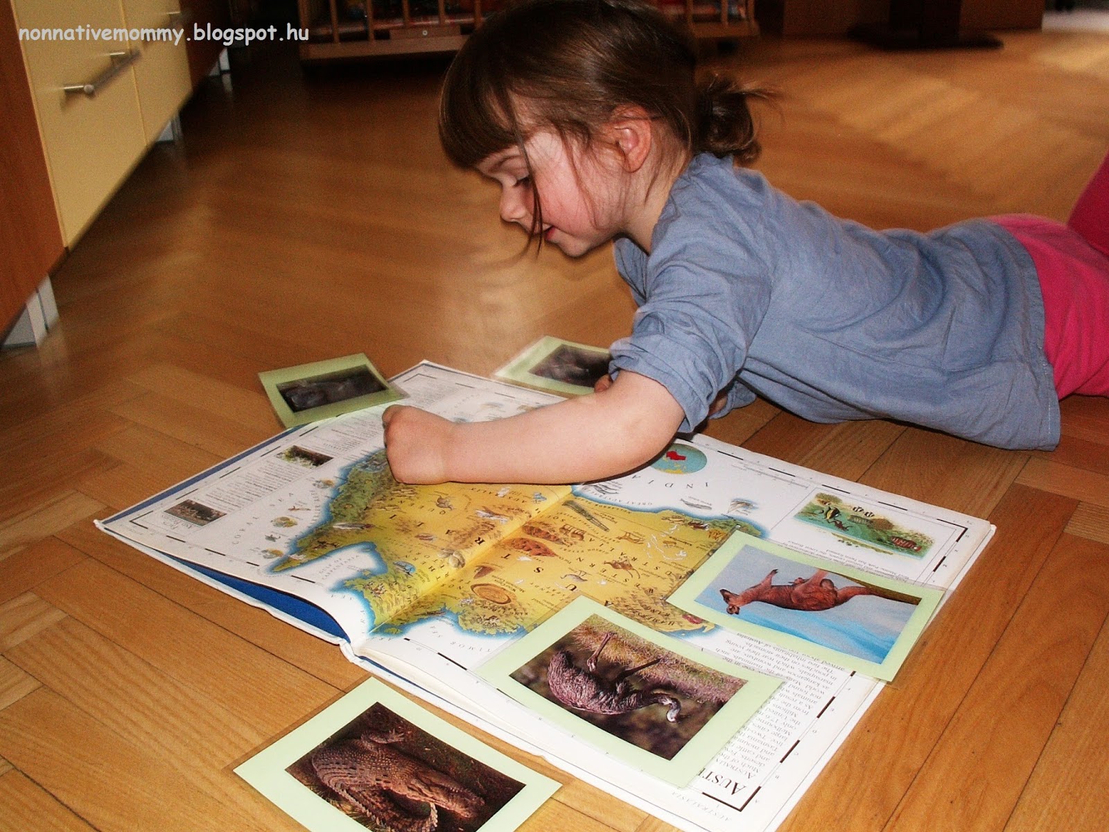 I’ve taken the opportunity of their visit to Hungary to introduce Australia to E. She loves planet Earth anyway. She already knows about continents (her favourite is Antarctica) so Australia will be fascinating for her. I hoped…
