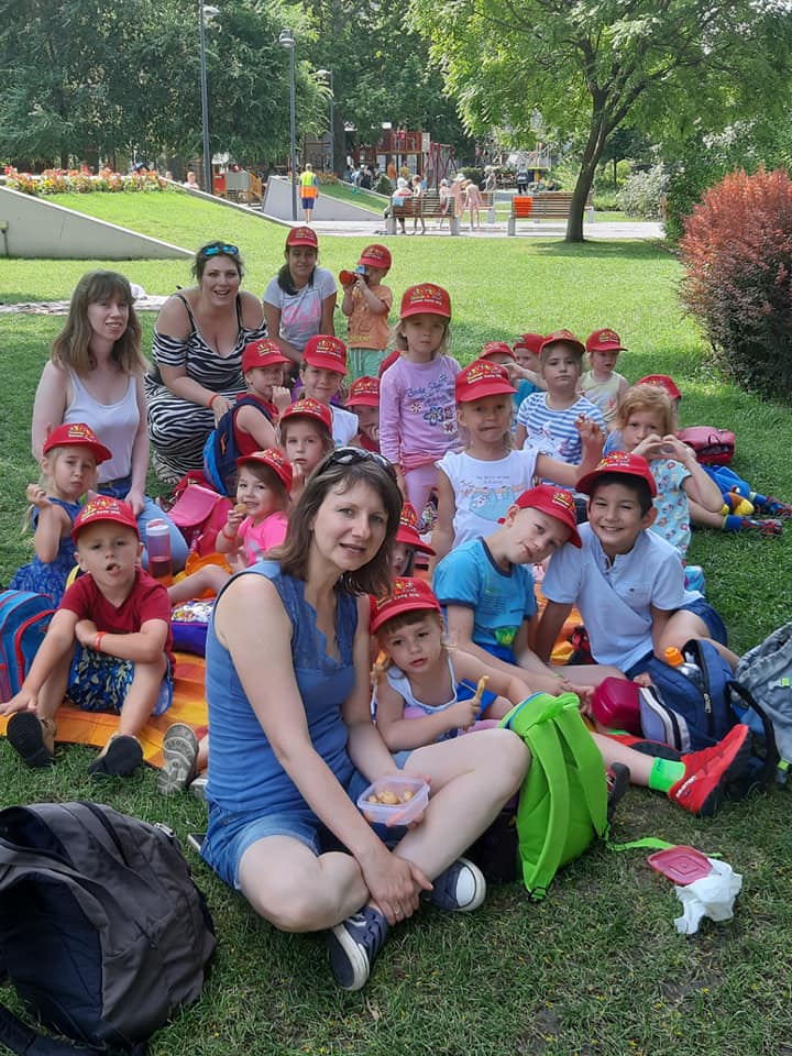 Around 10 we left for the playground with the kids and had real fun there too. The weather is very hot this summer but this playground was mostly in the shadow. The kids played in smaller groups at different parts of the playground (jungle gym, sand pit, swings, football pitch, see-saw etc). The teachers who were supervising them joined in the kids’ game and talked to them in English only. It was fantastic to see how these little children understood almost everything and quite a lot of them were able to interact in English as well thanks to taking part in A’s weekly Jump&Fun sessions and the English time they spend with their parents at home.