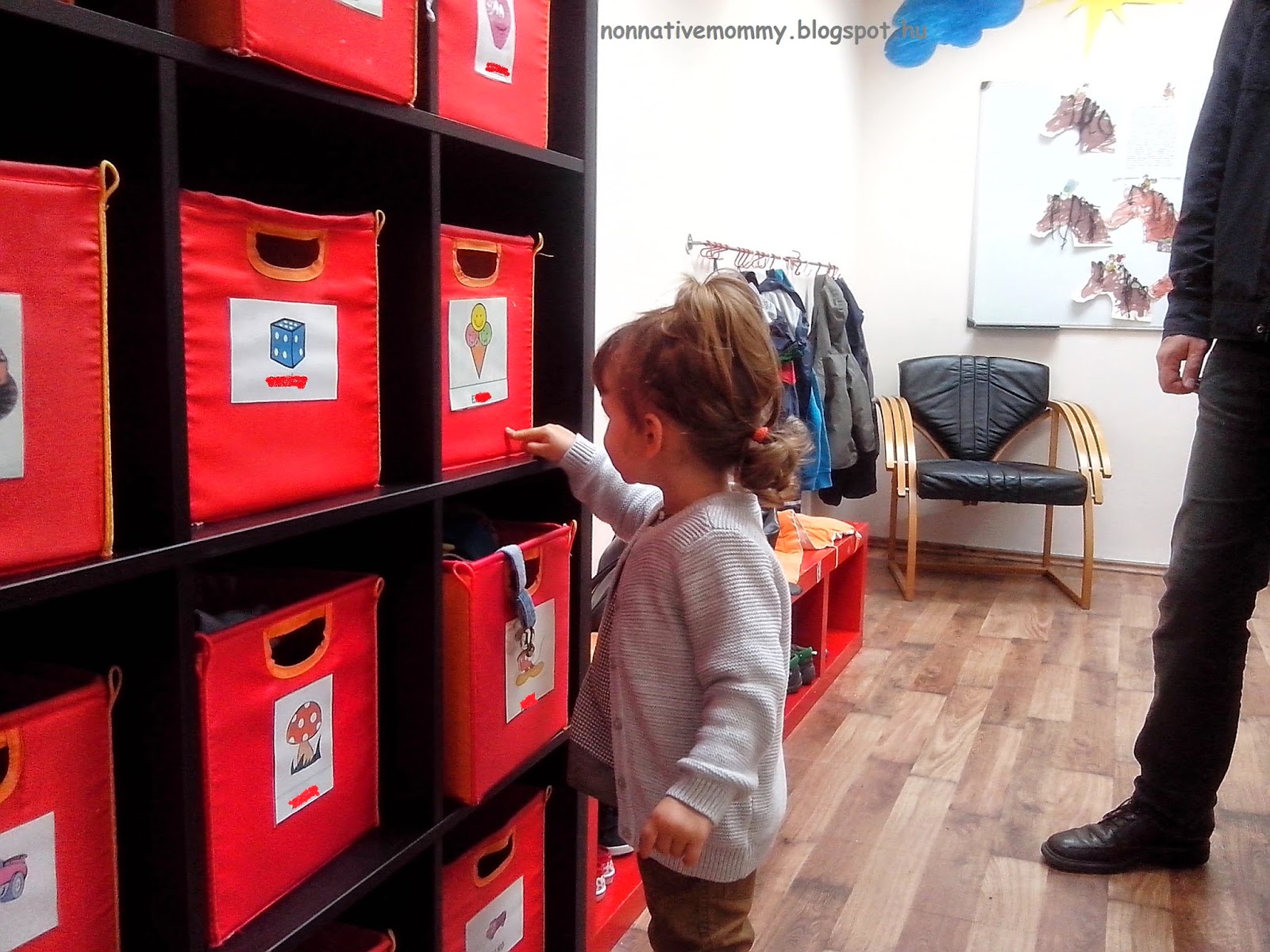 She doesn’t play in English as her choice, but has no problem whatsoever to communicate with a native speaker. Since the beginning of the year we’ve had native nannies (the American, L. and now the Canadian, V.) They have been coming twice a week for 90 minutes per session. Most of the time they play with building blocks, balls and the caterpillar tunnel, modelling clay, kitchen and cooking or they read books.