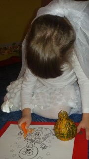 Flashcards are very popular with her. After having enough of eating she points at the cards. Her favourite categories are animals and baby objects.