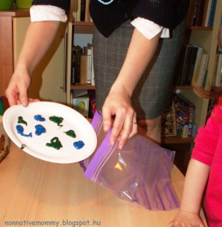 – place the paper plate (very carefully) into the plastic bag and seal it