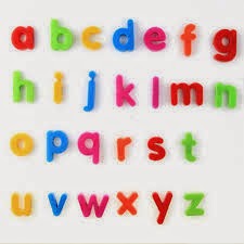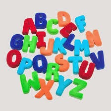 letters (magnetic, felt, play dough, cut out from cardboard, drawn on bottle tops)