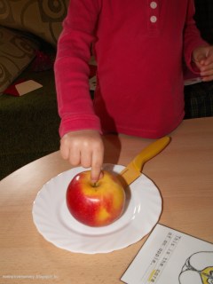 Although we had a week having fun with all kinds of apple games and activities (including the study of an apple) we couldn’t avoid being ill again. Anyway, here is a collection of apple fun we’ve done lately.