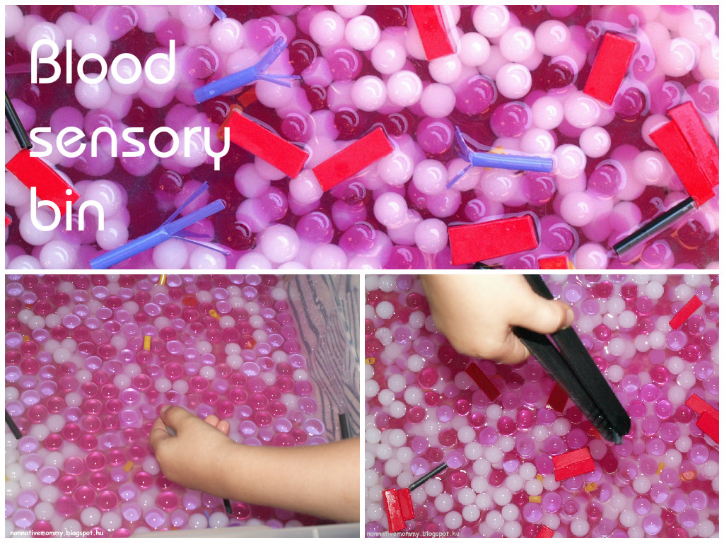 E. has been playing so much with the blood sensory bin that we’ve had enough time to cover the blood-related vocabulary both in English and Hungarian. So here is a word list to help you if you decide to prepare this fun activity for your kid. If I’m in a good mood, I might make some flashcards in this field.